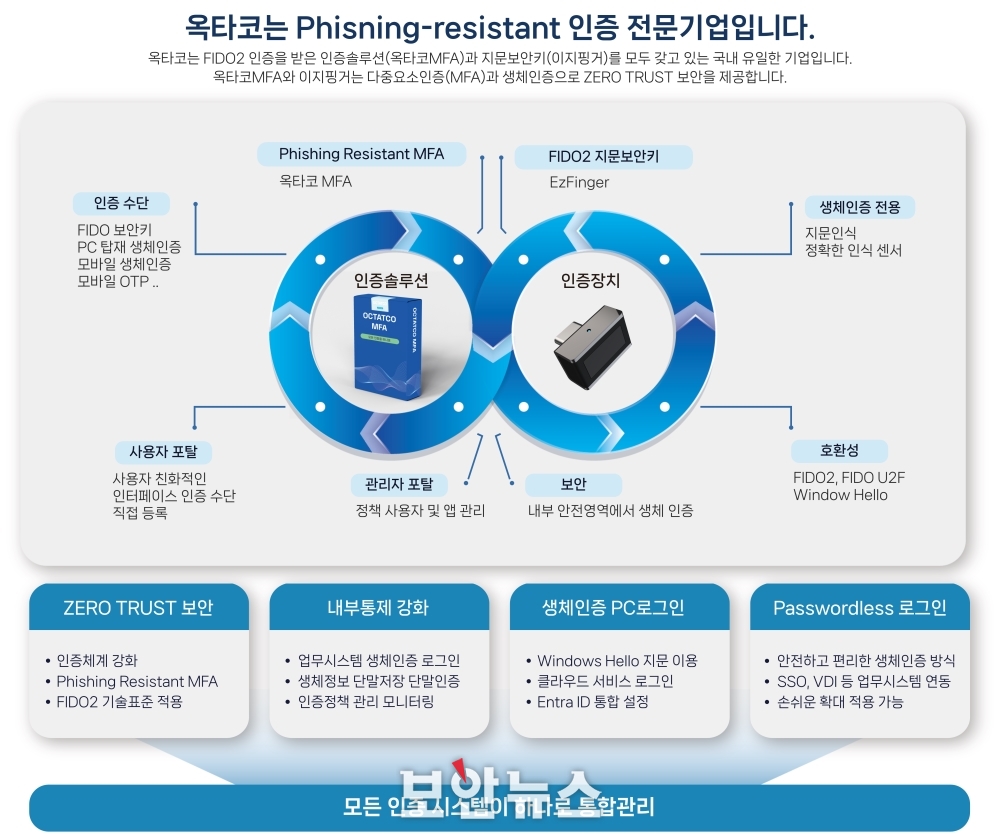 The system features OCTATCO’s Phishing-Resistant MFA and FIDO2 Fingerprint Security Keys as its core components. This solution ensures robust security by verifying user identities based on Zero Trust principles and multi-factor authentication.